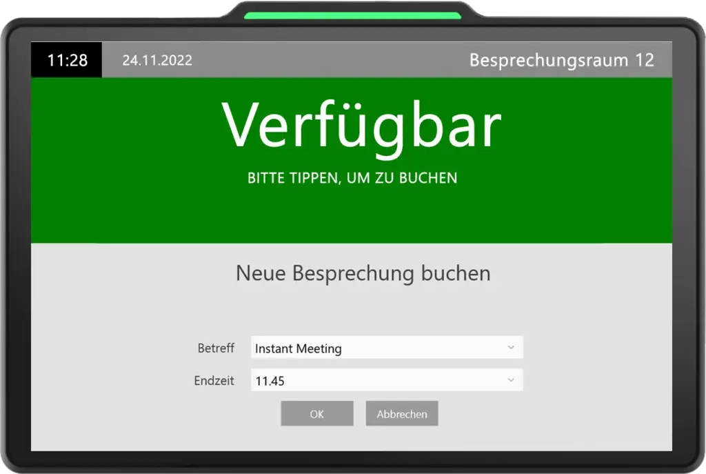 Mit diesem Gerät erleben Sie die Zukunft der Raumbuchung. Durch das minimalistische und elegante Design passt das Display perfekt in jeden Raum. Die diskrete Montage ermöglicht zudem eine nahtlose Integration, ohne die Ästhetik des Raums zu beeinträchtigen.